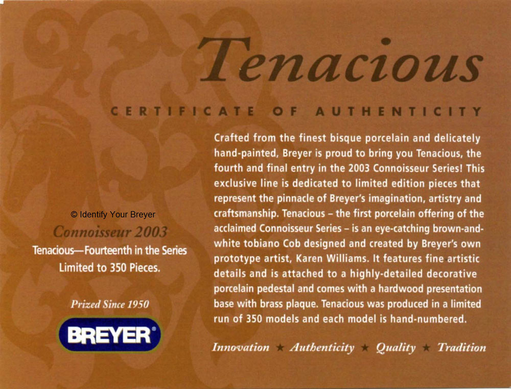 90126 | Tenacious | bay pinto | 2003 | Connoisseur Series (350 made) With Certificate of Authenticity |